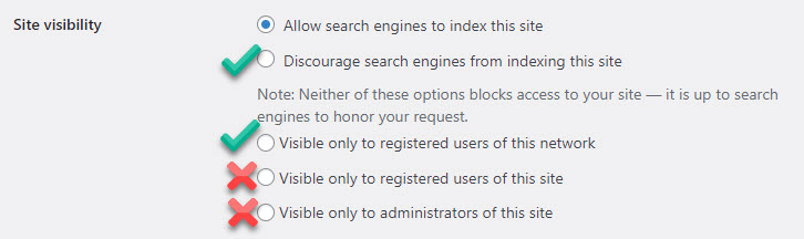 You can adjust your WordPress site privacy options from your Dashboard under Settings>Reading in the Site Visibility section. If you would like your site to be private please use one of the following two options as your Open Learning Faculty Member will need to review your WordPress site for various assessments throughout the course. The final two options will not allow your Open Learning Faculty Member to access your site.
